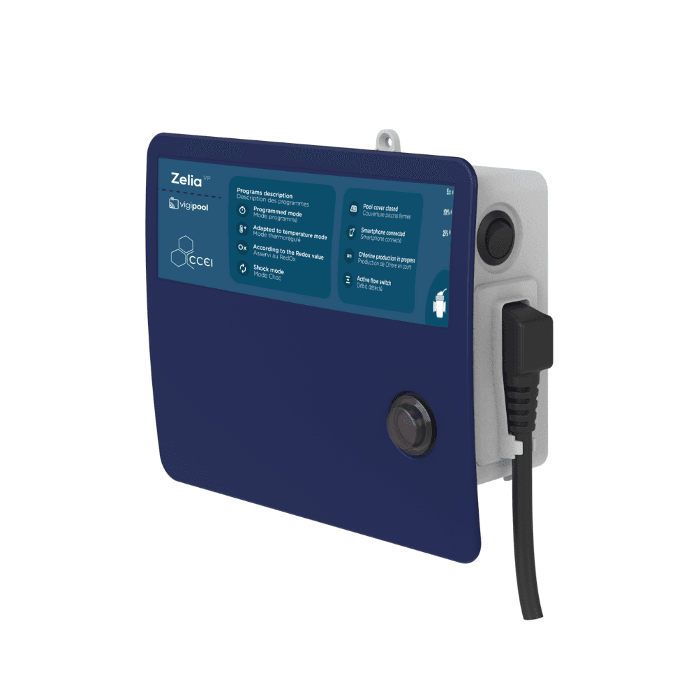 Via de intuïtieve Vigipool smartphone-app bedient u de Zelia VP-L volledig draadloos. Het systeem biedt geavanceerde bedrijfsmodi: geprogrammeerde productie op basis van tijdschema’s, automatische temperatuurcompensatie, RedOx-gestuurde regeling voor precisiebehandeling, en een intensieve shock-modus voor grondige waterbehandeling na intensief gebruik of vervuiling.